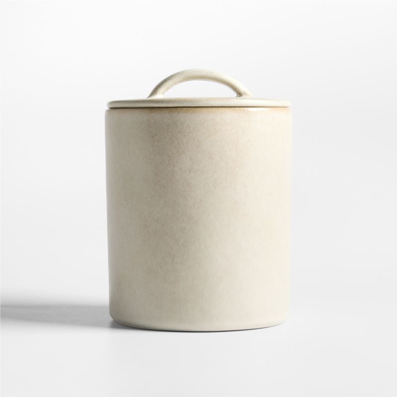 Our Juno collection elevates kitchen storage with quality artisanship, sustainable materials and display-worthy beauty. Skilled ceramicists mold this medium canister by hand using 95% recycled clay. The clean-curved cylinder is topped with an airtight lid—we love the juxtaposition of the slim, flat lid with the substantial handle that makes it easy to remove. Coated inside and out, the canister is finished with a creamy, lightly speckled reactive glaze with subtle variations that make each one unique.