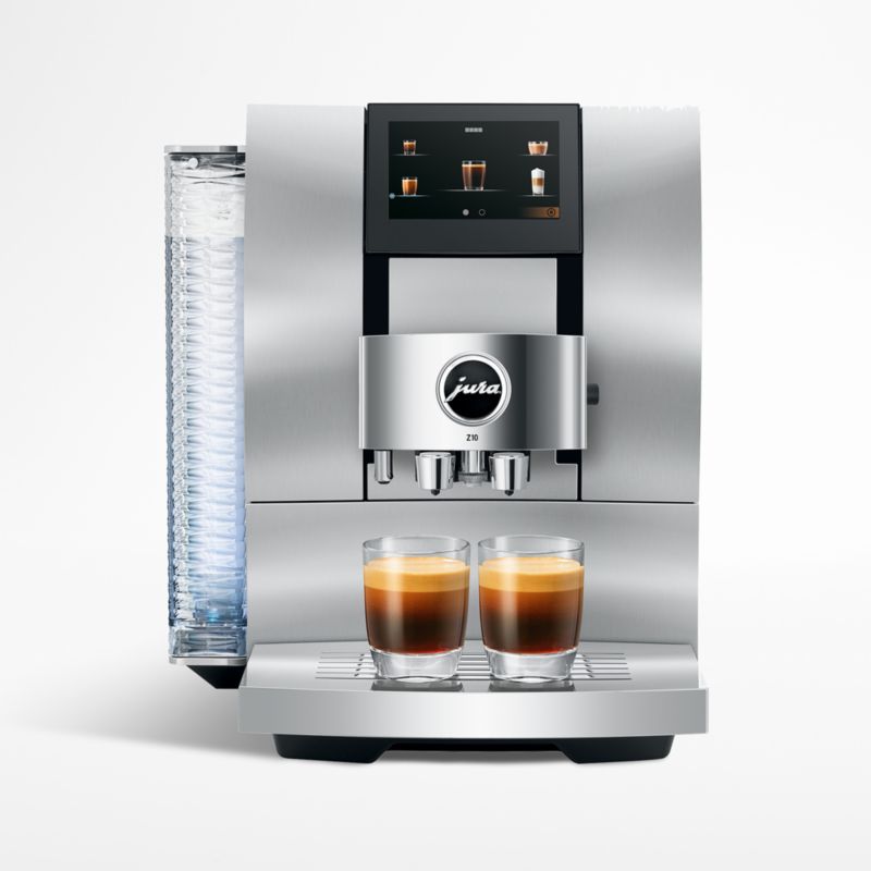 Inspired by the world's best baristas, the JURA Z10 brews 40 beverage options at the touch of a button. The burr grinder automatically adjusts to the drink choice with the right grind, while the 3-D brewing technology maximizes aroma. The innovative Cold Extraction process uses high-pressure cold water to extract the most flavor for cold-brew drinks. Choose from hot or cold cortado, latte, macchiato, flat white, cappuccino, doppio, Americano and other coffee drinks made to barista standards. Easy to maintain, the espresso machine boasts a one-touch milk system cleaning and integrated rinsing, cleaning and descaling programs. Equally impressive to look at, the white Z10 features an attractive wave design on the water tank and a curved aluminum front panel.