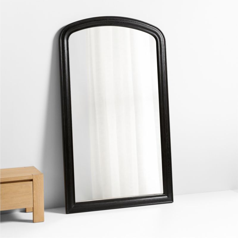 Inspired by Scandinavian architecture, our Kensington floor mirror showcases exquisite simplicity. Concentric carvings in the oak frame emphasize the arched rectangular silhouette while creating depth in the black-finished wood. Timeless with just a touch of drama, Kensington keeps things modern and casual with a laid-back lean.
