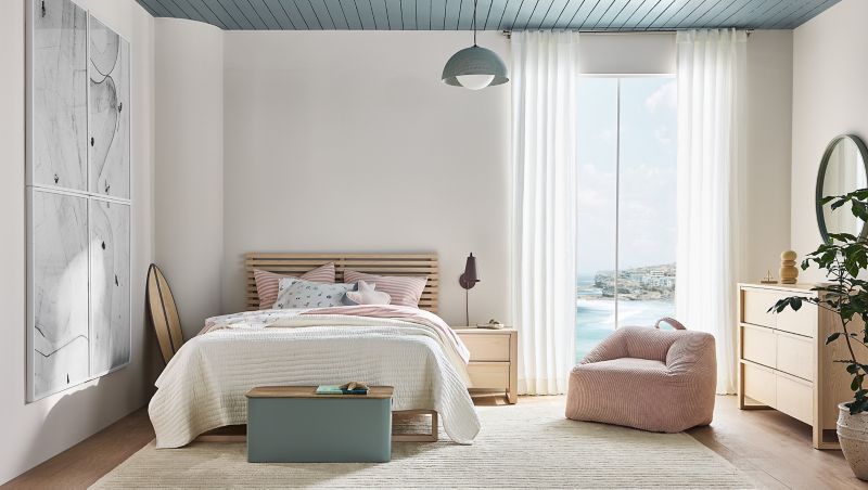 Designer tip: Get the coastal look with asunwashed version of your kid’s favorite hue.