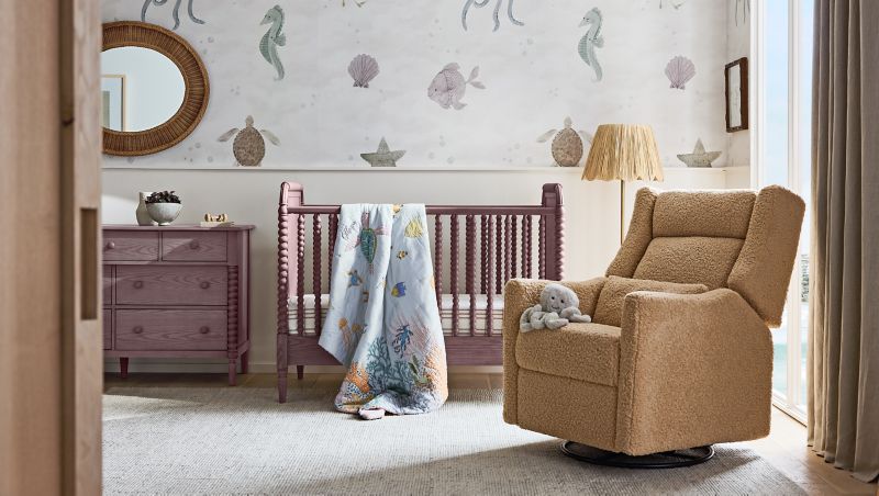 New! Our Raya nursery collection is craftedfrom oak with easy-glide storage drawers.