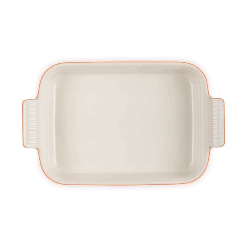 As beautiful as it is functional, the Heritage line of stoneware bakeware provides superior heat distribution and temperature retention, making it ideal for baked goods and roasted dishes. Crafted of dense stoneware, this rectangular baking dish is enameled in ombre red inspired by cherries. The essential baker resists scratching, staining, cracking and crazing, and its nearly non-stick interior effortlessly releases foods and cleans up easily. Based on designs from Le Creuset's archives, the cerise baking dish goes from oven to table for a timeless presentation.