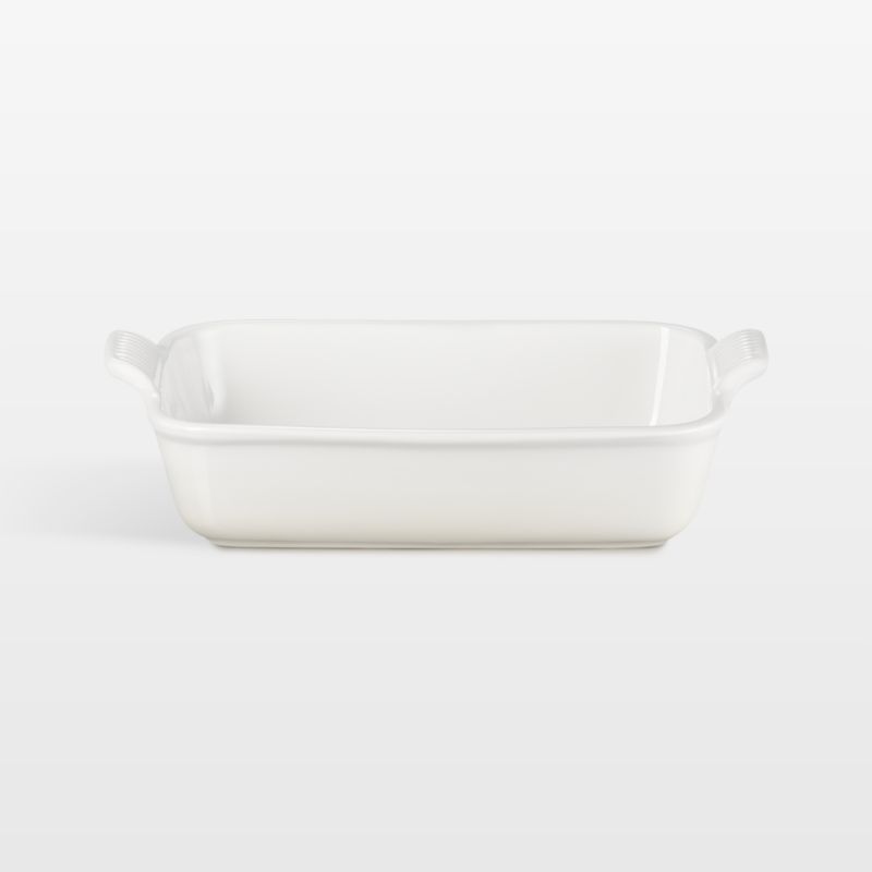 As beautiful as it is functional, the Heritage line of stoneware bakeware provides superior heat distribution and temperature retention, making it ideal for baked goods and roasted dishes. Crafted of dense stoneware, this rectangular baking dish is enameled in a warm white inspired by baked meringues. The essential baker resists scratching, staining, cracking and crazing, and its nearly non-stick interior effortlessly releases foods and cleans up easily. Based on designs from Le Creuset's archives, the baking dish goes from oven to table for a timeless presentation.