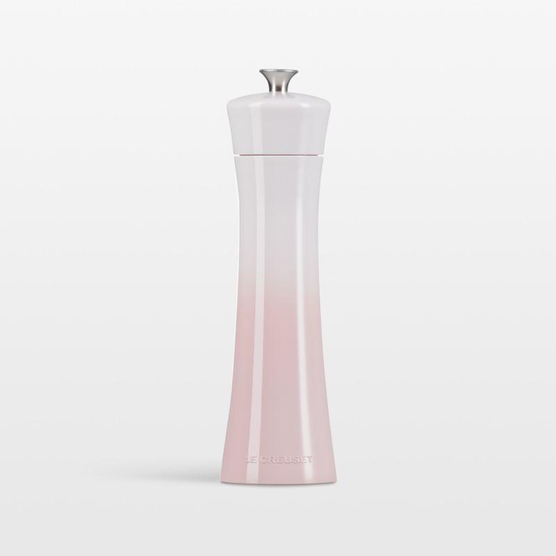Sleek, minimalist and modern, this pepper mill from Le Creuset delivers flawless functionality with eye-catching design. The mill's durable ceramic grinders adjust grind settings with a simple twist—clockwise for a finer grind, counterclockwise for a coarser grind. The pepper mill's subtle hourglass silhouette is highlighted with a glossy gradient pink finish.
