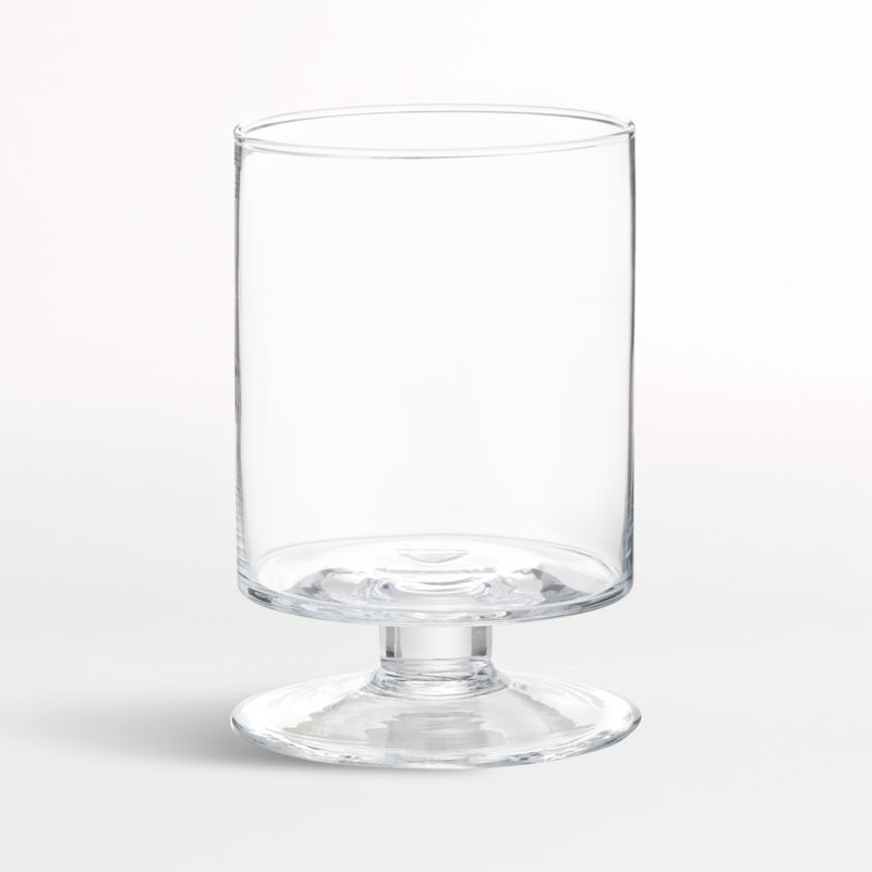 A Crate and Barrel classic, hand-blown glass hurricanes look as beautiful reflecting candlelight as they do filled with twinkling garlands or terrarium plantings. London Wide Short Glass Hurricane Candle Holder is handmade in crystal-clear glass by artisans at a European glass collective dating back to 1923.