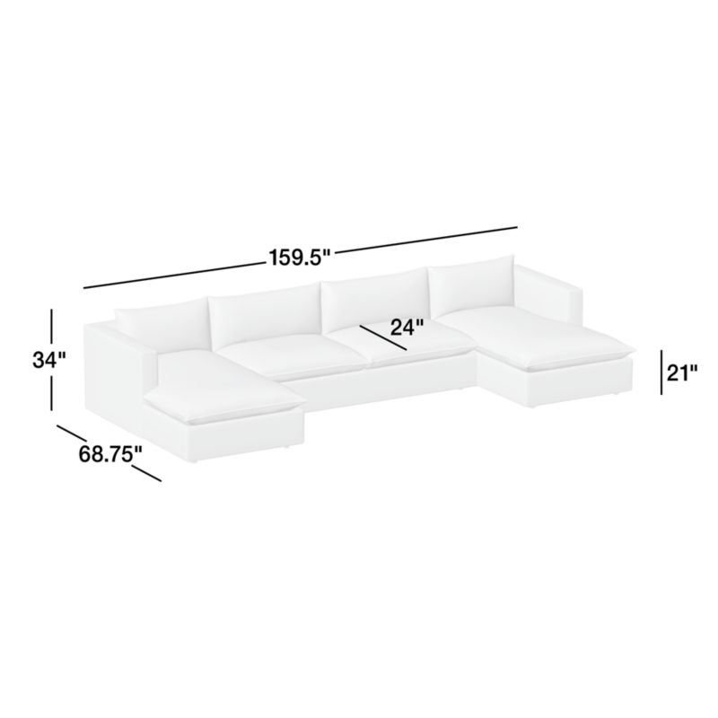 Lotus Deep Modular 3-Piece U-Shaped Sectional Sofa with Double Chaise Lounge34"Hheight159.5"Wwidth68.75"DdepthMeasurements are in inches.86.36Hheight405.13Wwidth174.62DdepthcmMeasurements are in centimeters.