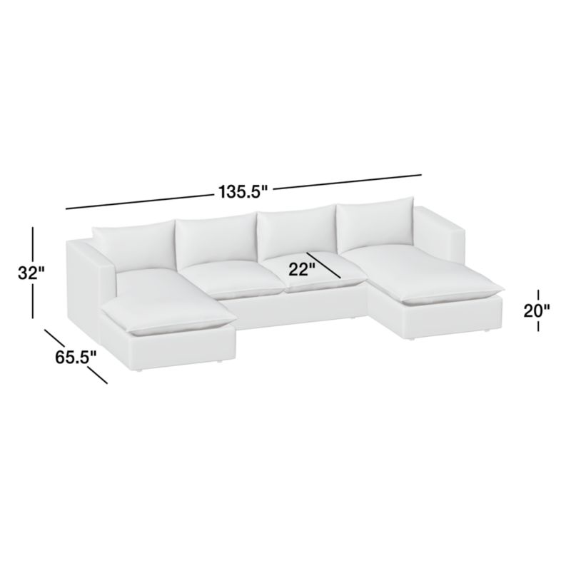 Lotus Modular 3-Piece U-Shaped Sectional Sofa with Double Chaise Lounge