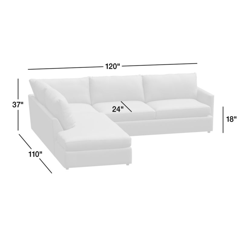 Lounge 3-Piece L-Shaped Sectional Sofa with Bumper25height120width110depthMeasurements are in inches.63.5height304.8width279.4depthMeasurements are in centimeters.