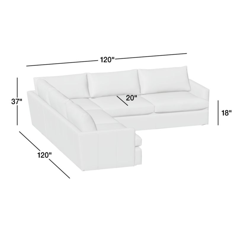 Lounge Classic 3-Piece L-Shaped Leather Sectional Sofa25"Hheight120"Wwidth120"DdepthMeasurements are in inches.63.5Hheight304.8Wwidth304.8DdepthcmMeasurements are in centimeters.