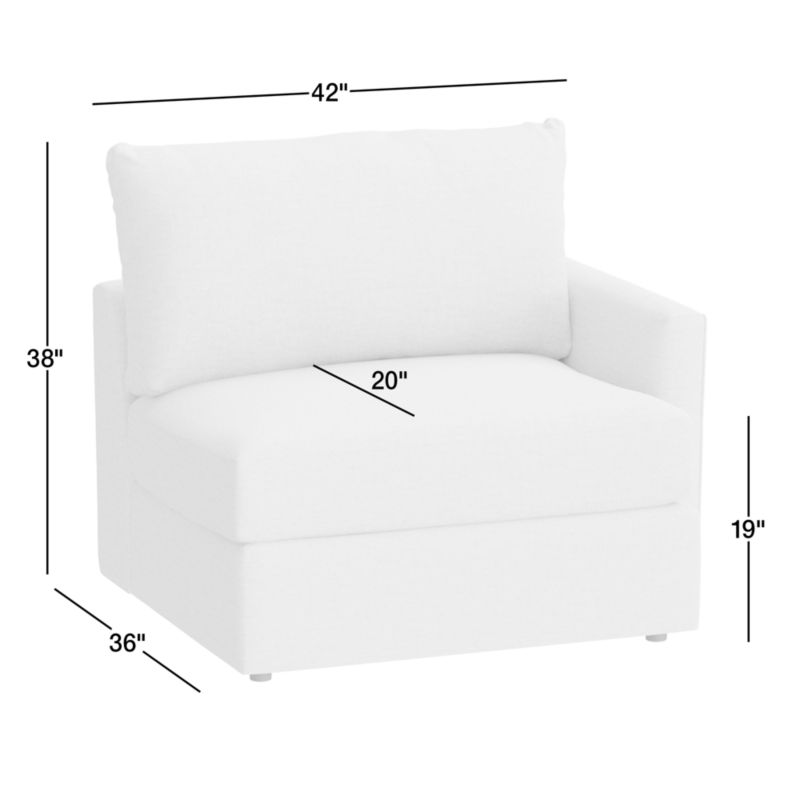 Lounge Classic Leather Right-Arm Chair Sectional Piece26"Hheight42"Wwidth36"DdepthMeasurements are in inches.66.04Hheight106.68Wwidth91.44DdepthcmMeasurements are in centimeters.