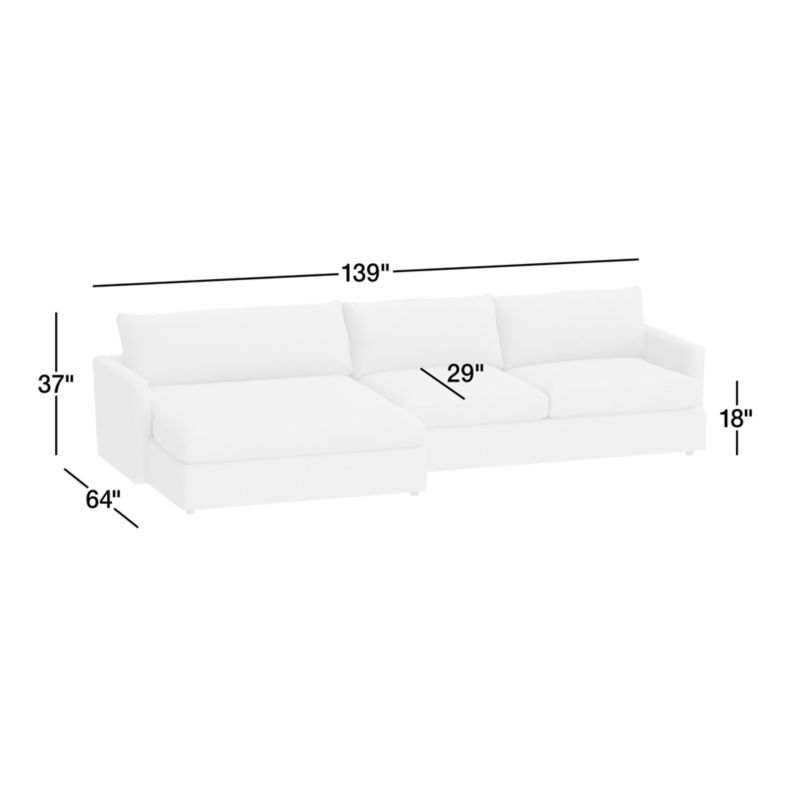 Lounge Deep 2-Piece Sectional Sofa with Extra Wide Chaise Lounge25height139width64depthMeasurements are in inches.63.5height353.06width162.56depthMeasurements are in centimeters.
