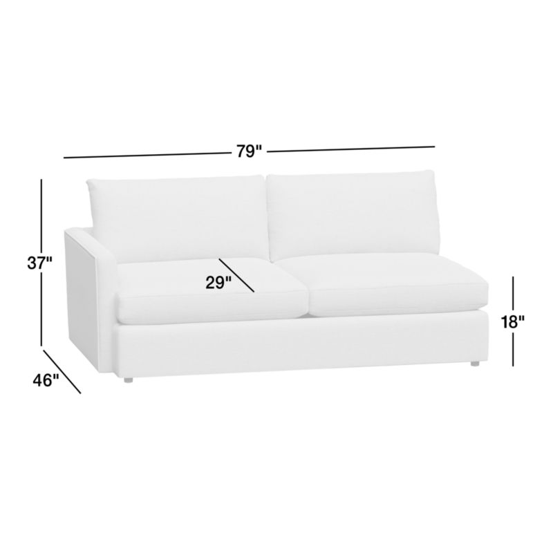 Lounge Deep Leather Left-Arm Sofa Sectional Piece25"Hheight79"Wwidth46"DdepthMeasurements are in inches.63.5Hheight200.66Wwidth116.84DdepthcmMeasurements are in centimeters.