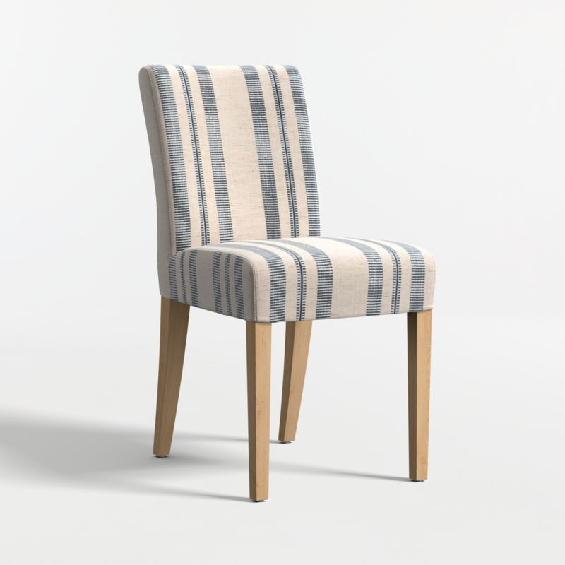 Lowe Indigo Stripe Upholstered Dining Chair with Natural Wood Legs