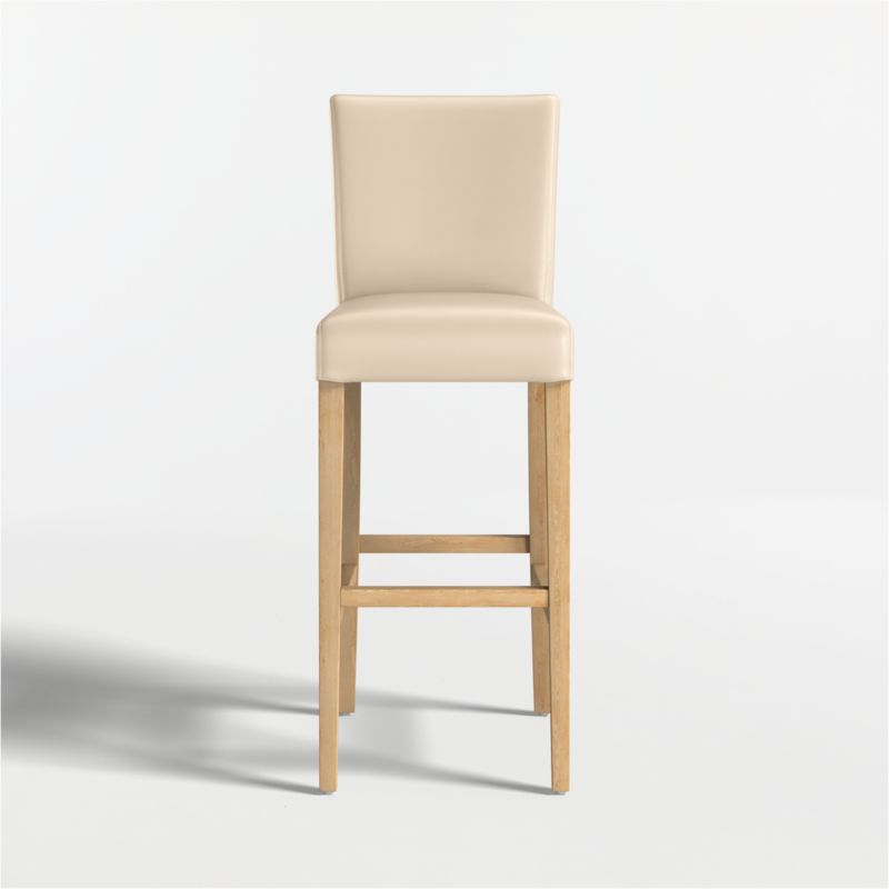 With a roomy cushioned seat and back, our Lowe bar stool is designed for lingering at a bar or high dining table. Sleek leather tailors the cushioned, tight seat in sophistication, pairing perfectly with slim hardwood legs. Our Lowe collection's many seating options in an array of coordinating leathers and fabrics mix and match for the perfect look.