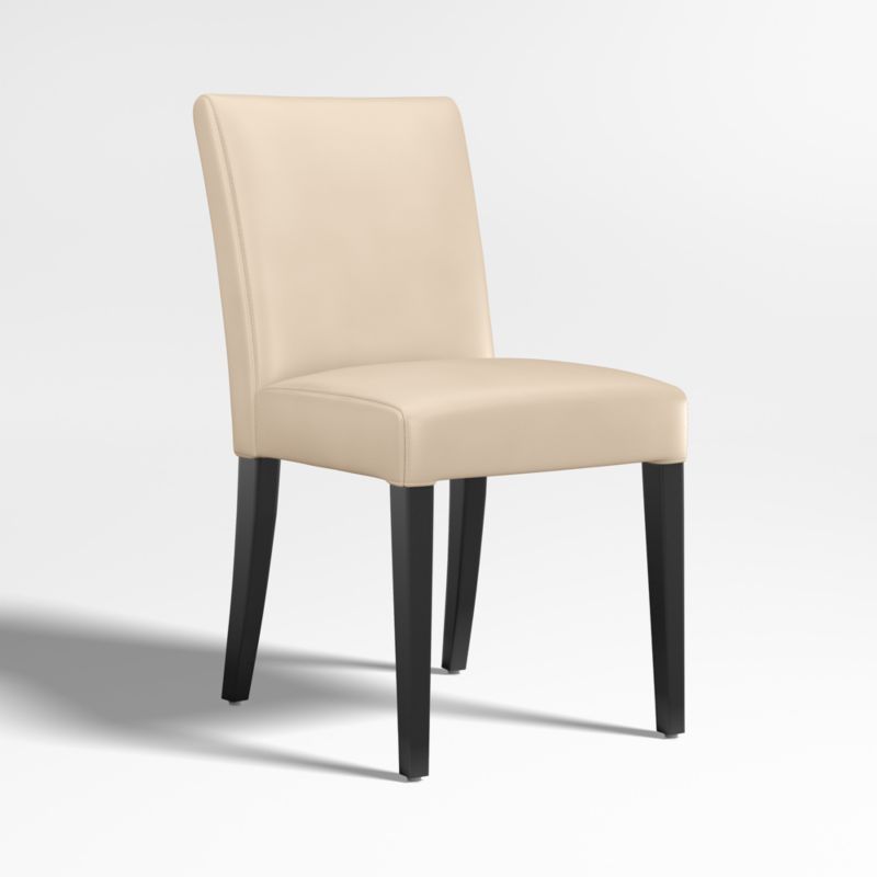 With a roomy cushioned seat and back, our Lowe dining chair is designed for tableside lingering. Sleek leather tailors the cushioned, tight seat in sophistication, pairing perfectly with slim hardwood legs. Our Lowe collection's many seating options in an array of coordinating leathers and fabrics mix and match for the perfect look.