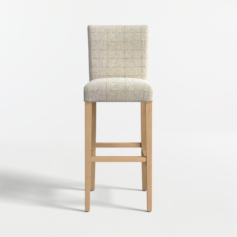Lowe Topaz Check Upholstered Bar Stool with Natural Wood Legs