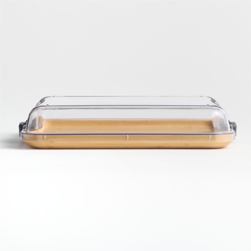 The handy Make and Take cheese board keeps the multiple components of a carefully composed cheese selection or charcuterie platter perfectly intact for transporting to family get-togethers or potlucks. Rimmed to keep food from sliding around, the bamboo board has a slightly tapered base for stability. The reversible design flips to a cutting board to prep ingredients before arranging on the other side. A clear acrylic lid snaps on for a perfect fit, equipped with integrated handles for easy carrying.
