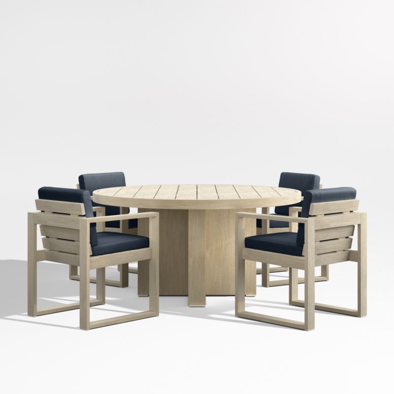 Mallorca 60" Wood Outdoor Dining Table Set with Canvas Navy Sunbrella ® Cushions