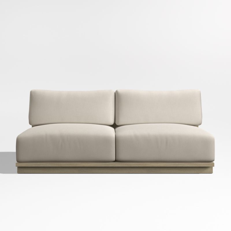Mallorca 68" Wood Armless Outdoor Sofa with Canvas Flax Sunbrella ® Cushions