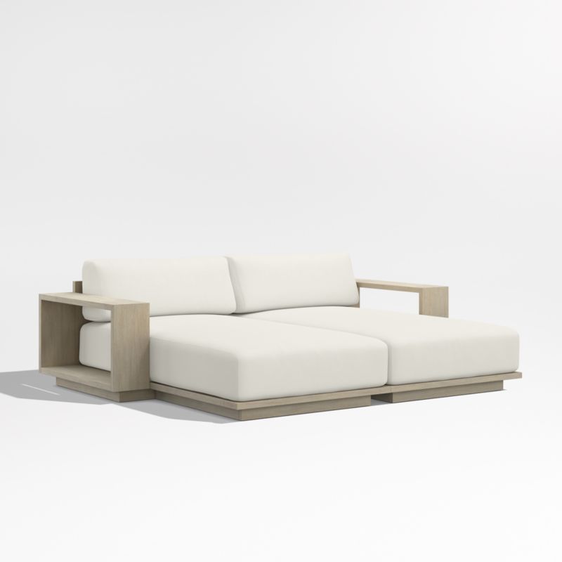 Mallorca 86" Wood Double-Chaise Outdoor Daybed with Canvas Natural Sunbrella ยฎ Cushions