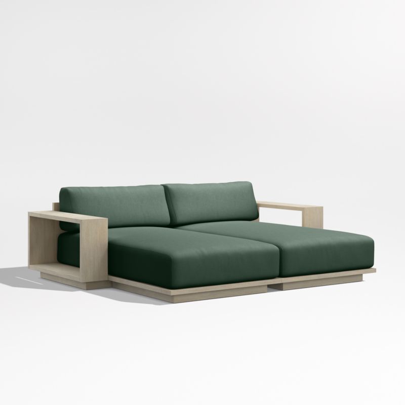 Mallorca 86" Wood Double-Chaise Outdoor Daybed with Cast Ivy Sunbrella ® Cushions
