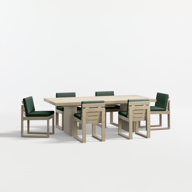 Mallorca 92"-114" Solid Wood Outdoor Extension Dining Table and Chair Set with Cast Ivy Sunbrella ® Cushions