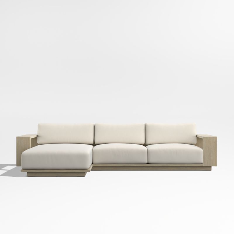 Mallorca Wood 2-Piece Left-Arm Chaise Outdoor Sectional Sofa with Ivory Cushions