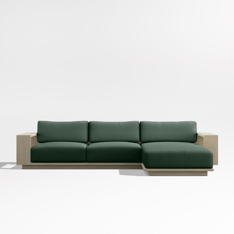 Mallorca Wood 2-Piece Right-Arm Chaise Outdoor Sectional Sofa with Cast Ivy Sunbrella ® Cushions
