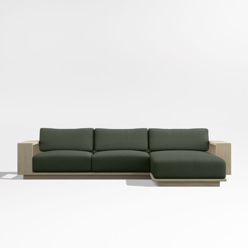 Mallorca Wood 2-Piece Right-Arm Chaise Outdoor Sectional Sofa with Cast Sage Green Sunbrella ยฎ Cushions