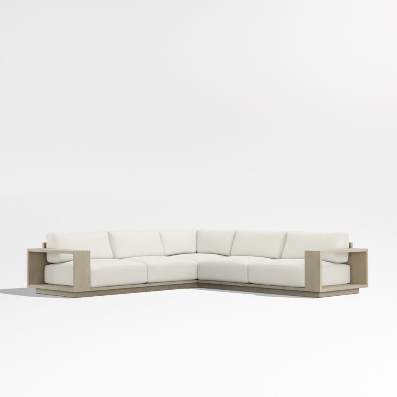 Mallorca Wood 3-Piece L-Shaped Outdoor Sectional Sofa with Canvas Natural Sunbrella ยฎ Cushions