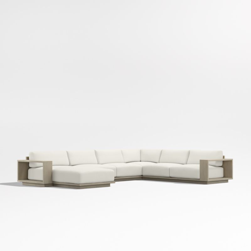 Mallorca Wood 4-Piece Left-Arm Chaise U-Shaped Outdoor Sectional Sofa with Canvas Natural Sunbrella ยฎ Cushions