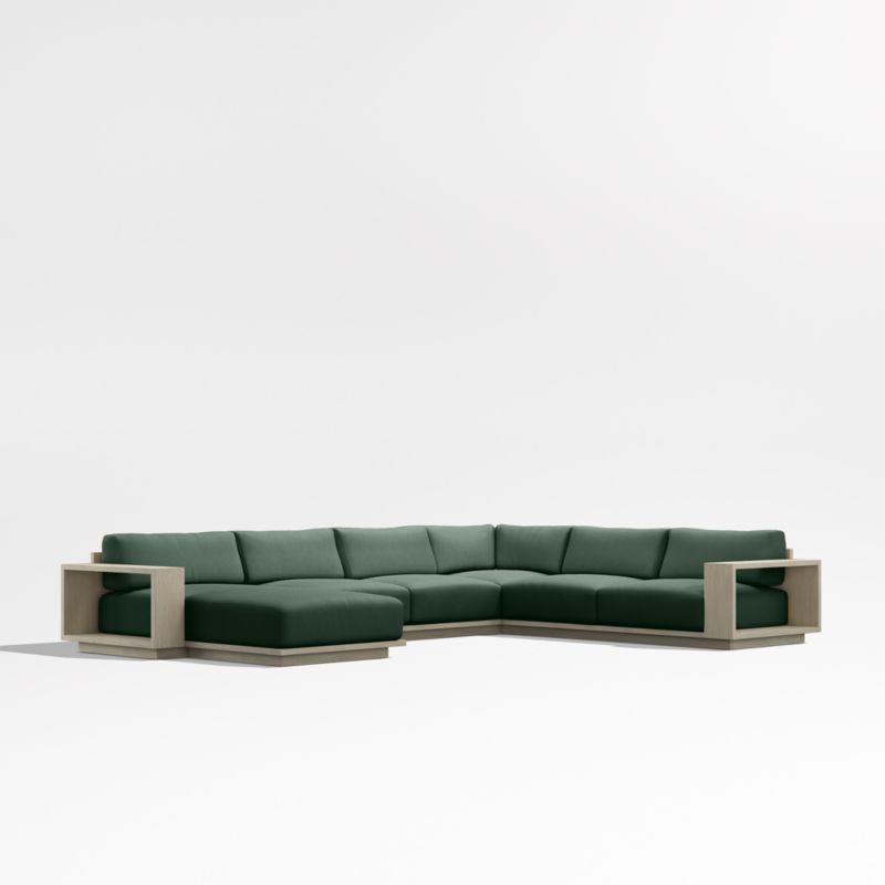 Mallorca Wood 4-Piece Left-Arm Chaise U-Shaped Outdoor Sectional Sofa with Cast Ivy Sunbrella ® Cushions