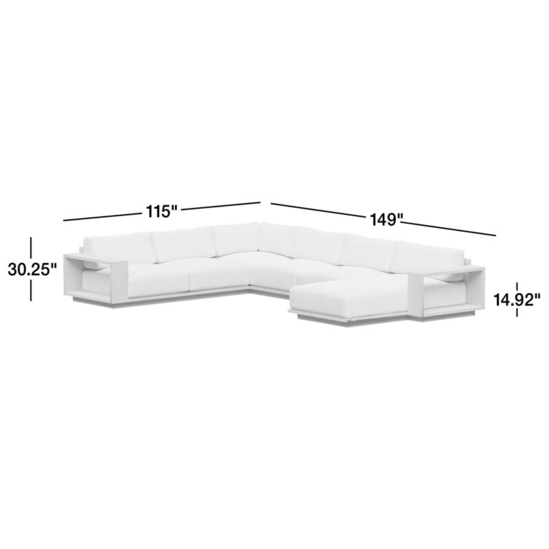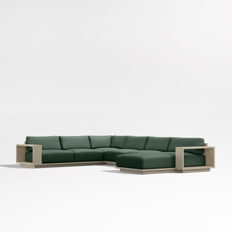 Mallorca Wood 4-Piece Right-Arm Chaise U-Shaped Outdoor Sectional Sofa with Cast Ivy Sunbrella ® Cushions
