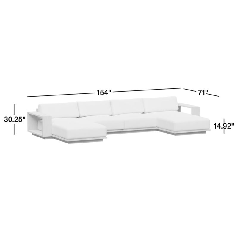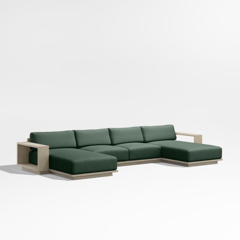 Mallorca Wood Double-Chaise Outdoor Sectional Sofa with Cast Ivy Sunbrella ® Cushions