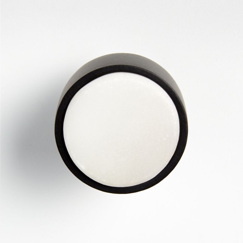 Each one of these handsome knobs begins with a hand-selected piece of white marble that's cut, shaped and polished to fit perfectly in a cylindrical setting finished in matte black. An instant update for the kitchen, bathroom or your favorite piece of furniture, the knob adds a touch of glam to cabinets and drawers. Each marble-and-black knob is handcrafted and easy to install.