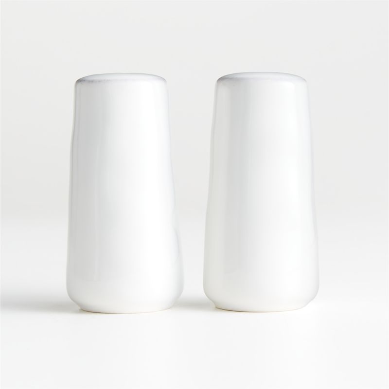 Complete the table with a salt and pepper set inspired by our coveted Marin dinnerware and serveware. Glazed soft white, the stoneware shakers exhibit the same free-form, organic curves as the coordinating dishes and serving pieces. Keep one set on the dining table and one next to the stove for a cohesive, artisanal look. Our exclusive white salt and pepper shaker set makes a thoughtful dish for someone who adores their white Marin dinnerware.