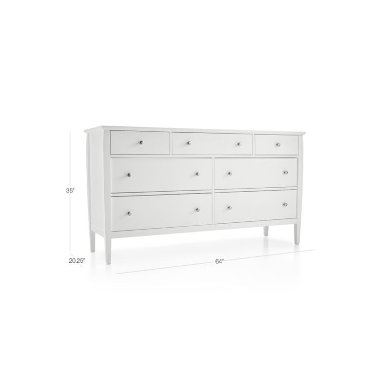 The Mason seven-drawer dresser balances clean lines with a fresh white finish while delivering plenty of room for bedroom storage. Wide dresser sits high on legs that take a turn with tradition, flowing right into the frame and curving in at the top.