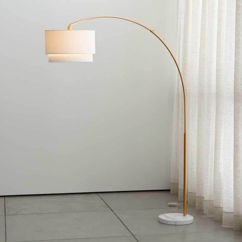 Meryl Arc Brass Floor Lamp with White Shade 85"
