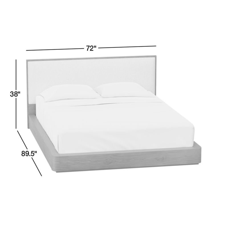 Milano looks to Italian design for its low profile and modern way with wood. Walnut veneer shapes the broad rails with rounded corners and creates a slim frame for the padded headboard. The wood's natural finish offers a warm counterpoint to the headboard's off-white boucle fabric rich with touchable texture. For a coordinated bedroom, pair the bed with our Milano dresser.