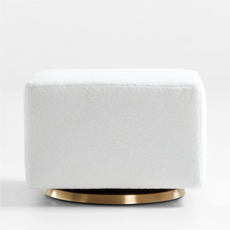 Designed exclusively for us by the amazing artisans at Monte Design ™, our Milo gliding ottoman is wrapped in faux sheepskin upholstery that really beckons you to sit and stay a while (possibly longer). Finished in gleaming gold, the incredible stainless steel pedestal base gives this gliding ottoman a look like no other. Pair with our Milo glider in a nursery, bedroom or family room.