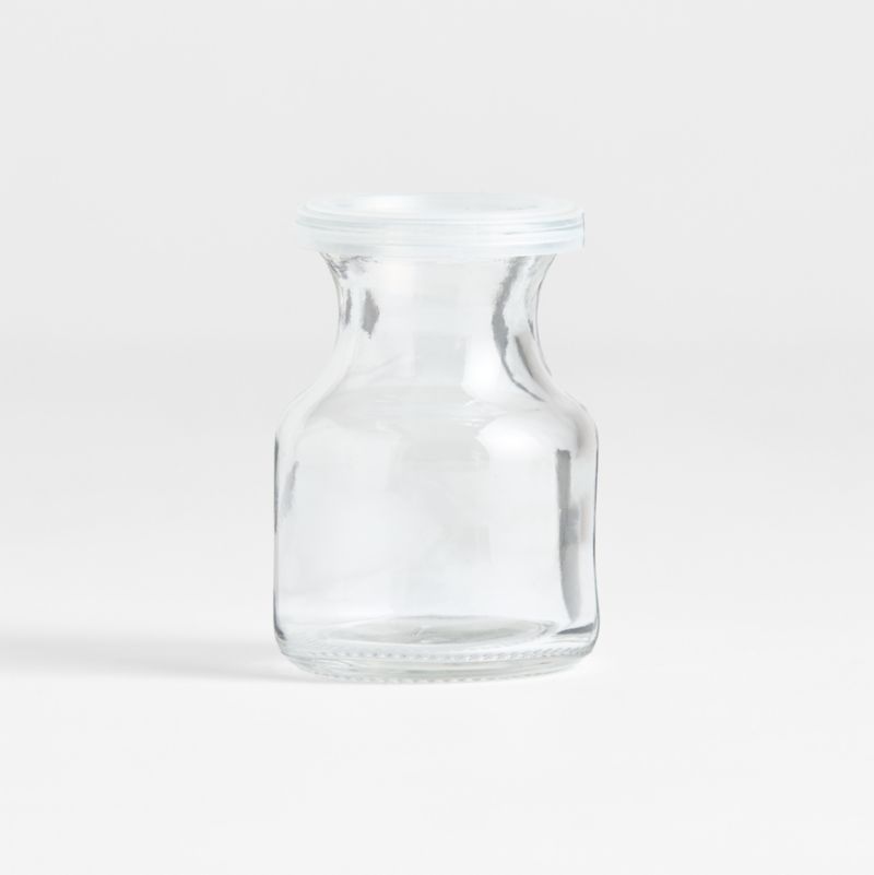 Cream, syrup, salad dressing, fresh-squeezed juices, leftover sauces —everything tastes better poured from our retro-styled mini glass jug. This adorable little jug, a Crate and Barrel exclusive, comes in handy in countless ways. The plastic storage lid keeps contents fresh.