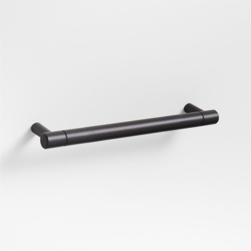 Sometimes it's the small things that pull a room together. That's why we've designed a hardware collection with modern silhouettes and a touch of tradition to give your kitchen and bathroom that perfect finishing touch. Grooved detailing lends an industrial vibe to this refined bar pull. Crafted of brass, the five-inch pull has an understated geometry enhanced by the matte black finish. Hardware is included to make it easy to refresh the look of dresser drawers, cabinet doors and vanities.