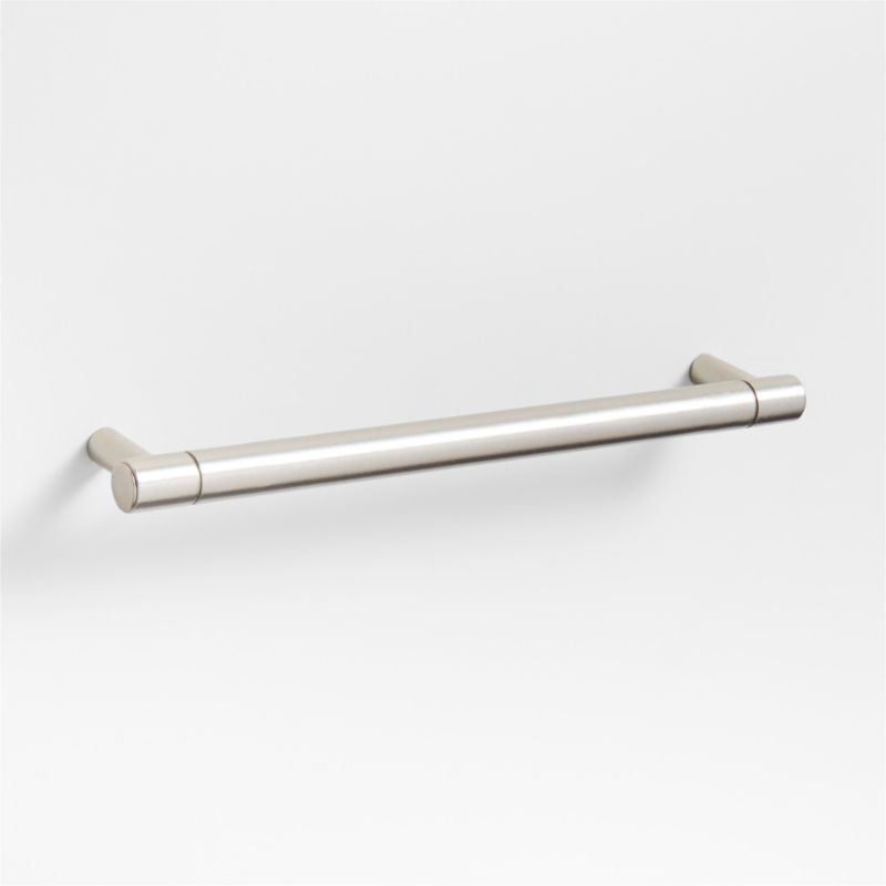 Sometimes it's the small things that pull a room together. That's why we've designed a hardware collection with modern silhouettes and a touch of tradition to give your kitchen and bathroom that perfect finishing touch. Grooved detailing lends an industrial vibe to this refined bar pull. Crafted of brass, the six-inch pull has an understated geometry enhanced by the brushed nickel finish. Hardware is included to make it easy to refresh the look of dresser drawers, cabinet doors and vanities.