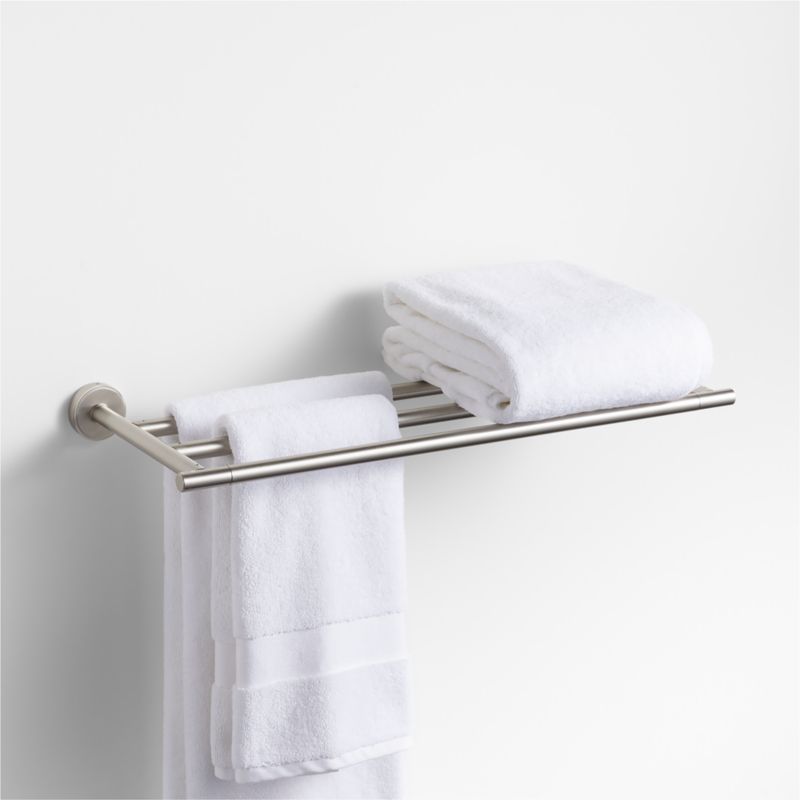 Sometimes it's the small things that pull a room together. That's why we've designed a hardware collection with modern silhouettes and a touch of tradition to give your bathroom that perfect finishing touch. Grooved detailing and a brushed nickel finish lend an industrial vibe to this brass wall-mounted towel rack. Anchored by scaled-up circles, the triple-rod towel bar provides plenty of space to hang and stack towels of various sizes. Provided hardware makes it easy to refresh the look of bathrooms and powder rooms.