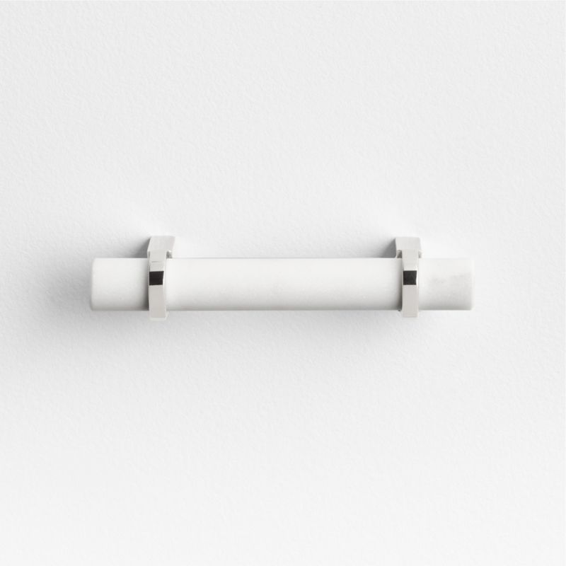 Sometimes it's the small things that pull a room together. That's why we've designed a hardware collection with modern silhouettes, clean lines and a touch of tradition to give your kitchen or bath that perfect finishing touch. Showcasing naturally beautiful white marble, our pull elevates a cabinet, dresser or vanity with an eye-catching organic accent. We love the way the polished chrome bracket cradles the slender marble rod in a sleek mix of materials. Our three-inch bar pull instantly dresses up drawers and doors throughout the home.