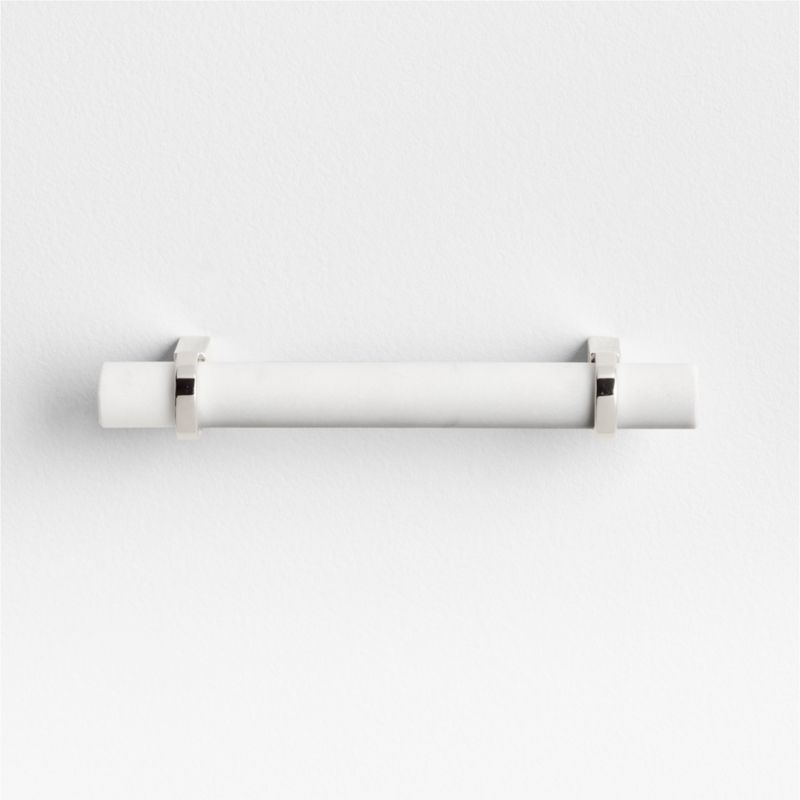 Sometimes it's the small things that pull a room together. That's why we've designed a hardware collection with modern silhouettes, clean lines and a touch of tradition to give your kitchen or bath that perfect finishing touch. Showcasing naturally beautiful white marble, our pull elevates a cabinet, dresser or vanity with an eye-catching organic accent. We love the way the polished chrome bracket cradles the slender marble rod in a sleek mix of materials. Our four-inch bar pull instantly dresses up drawers and doors throughout the home.