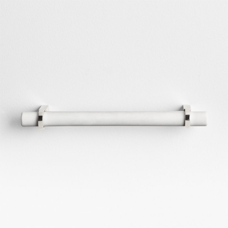 Showcasing naturally beautiful white marble, our pull elevates a cabinet, dresser or vanity with an eye-catching organic accent. We love the way the polished chrome bracket cradles the slender marble rod in a sleek mix of materials. Our six-inch bar pull instantly dresses up drawers and doors throughout the home.