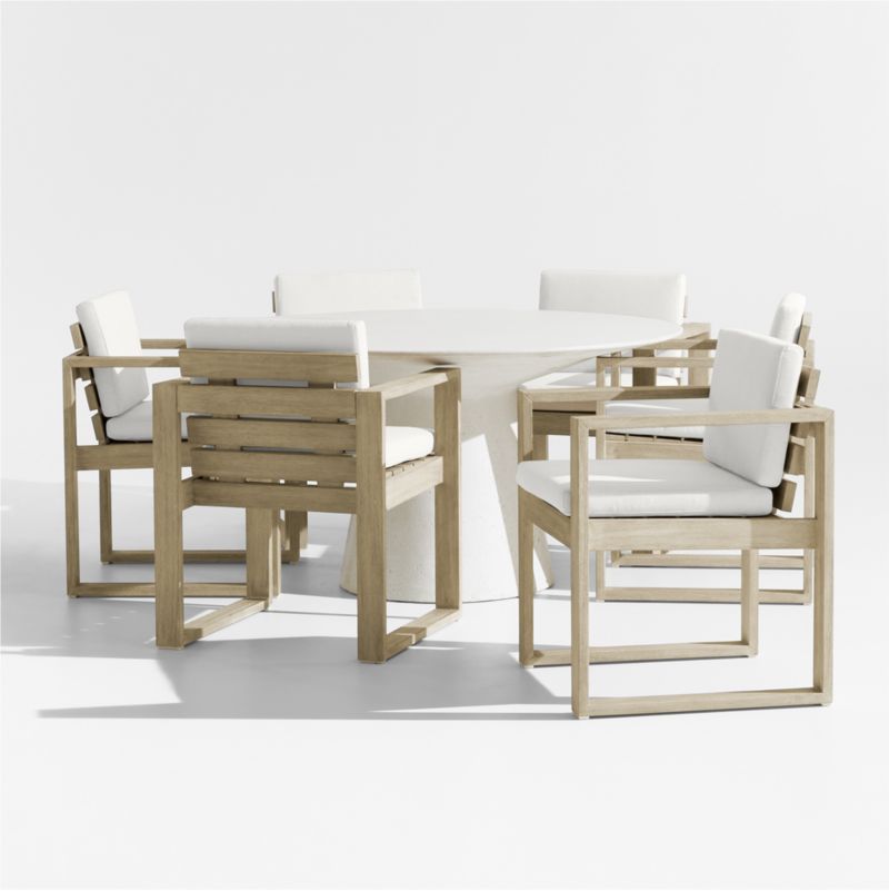 Nayarit Cement Outdoor Dining Table Set with Mallorca Chairs and Canvas Natural Sunbrella ยฎ Cushions