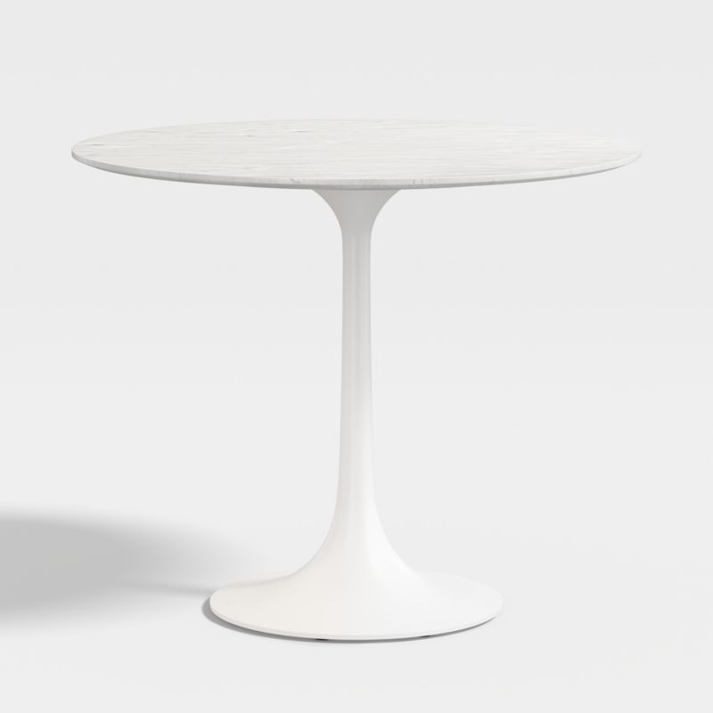 Nero 36" Round White Marble Dining Table with White Base