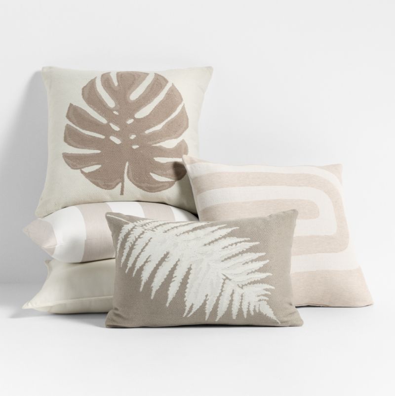 Neutral Botanical Outdoor Throw Pillow Arrangement